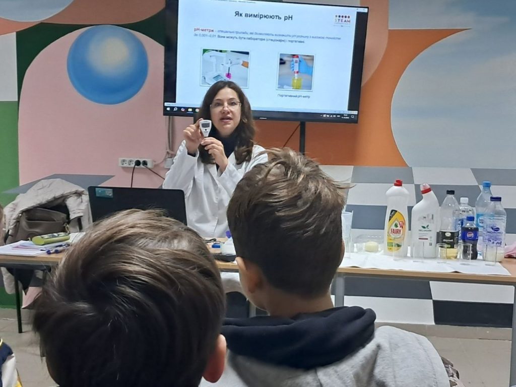 Сьогодні у STEAM – лабораторії відбувся урок ” Наука про рН: кислотність та лужність в нашому житті”. Вік відвідувачів був від 8 до 50 років, але усім було цікаво!